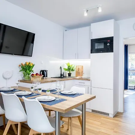 Ten apartament zapewnia dostęp do Plaży Dębiny w odległości prawie 10 min jazdy autem. Obiekt oferuje na miejscu saunę, park wodny i słoneczny taras, obiekty sauny i kryty basen.